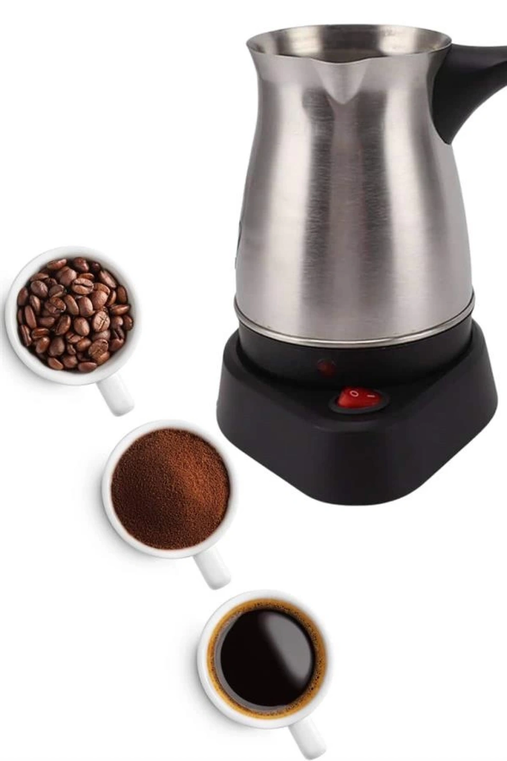 Bu şık ve fonksiyonel elektrikli cezve, 800 watt gücüyle hızlı ve verimli bir kahve pişirme deneyimi sunar. 360 ml kapasitesi ile 6 fincana kadar Türk kahvesi hazırlama imkanı sağlar, böylece kalabalık misafirlerinizle keyifli bir kahve zamanı geçirebilirsiniz. Gizli rezistans teknolojisi, kahvenin hızlı ve güvenli bir şekilde pişmesini sağlarken, aynı zamanda temizlik açısından büyük kolaylık sağlar.360 derece dönebilen kablosuz tabanı, hareket özgürlüğü tanıyarak pişirme sırasında rahat kullanım sunar. Paslanmaz çelikten üretilen gövdesi, hem dayanıklı hem de şık bir tasarıma sahiptir. Kolayca temizlenebilen yapısı, hijyenik kullanım sunar ve her seferinde temiz bir deneyim yaşamanızı sağlar.Cezvenin üzerinde yer alan kırmızı güç düğmesi, açma ve kapama işlemini hızlı ve pratik hale getirir. Isınmayan ergonomik kulpu, kullanım sırasında güvenliği artırır ve rahat bir tutuş sağlar. Paslanmaz çelik yapısı, uzun ömürlü ve dayanıklı bir kullanım sunarak yıllarca keyifle kullanmanızı sağlar.Bu elektrikli cezve, lezzetli Türk kahveleri hazırlamanın yanı sıra, modern tasarımı ve kullanışlı özellikleri ile mutfağınıza şıklık katacak bir üründür. Hem pratik hem de estetik açıdan mükemmel bir seçenek olup, 6 fincana kadar kahve hazırlama kapasitesiyle geniş aileler ve misafirler için ideal bir tercihtir.