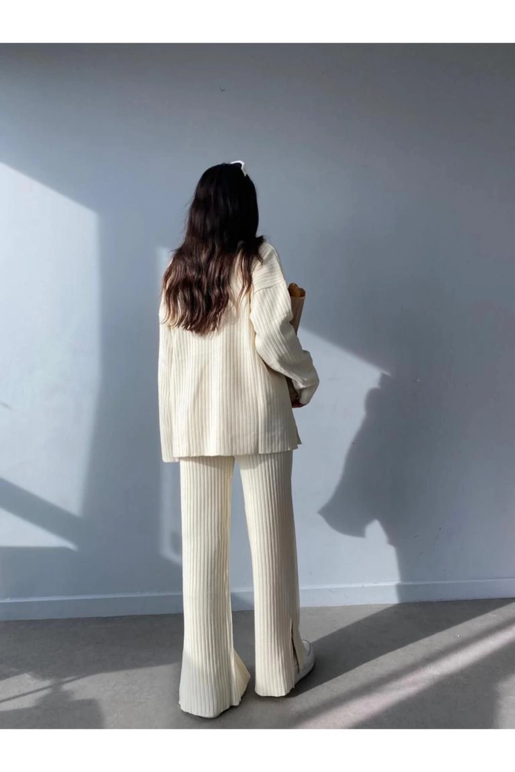 - Sade ve şık tasarımıyla her ortamda rahatlıkla tercih edilebilen düz desenli triko takım; - Yumuşak dokusuyla konforlu bir kullanım sunan triko kumaştan üretilmiştir; - Modern ve geniş paça kesimi ile gün boyu rahat hareket etme özgürlüğü sağlar; - Oversize kalıbı sayesinde vücut hatlarını sarmadan özgürce hareket etme imkanı tanır; - Regular boy uzunluğu, farklı vücut tiplerine uyum sağlayarak ideal bir kullanım sunar; - Her yaş grubuna hitap eden tasarımıyla geniş bir kullanıcı yelpazesine sahiptir;
