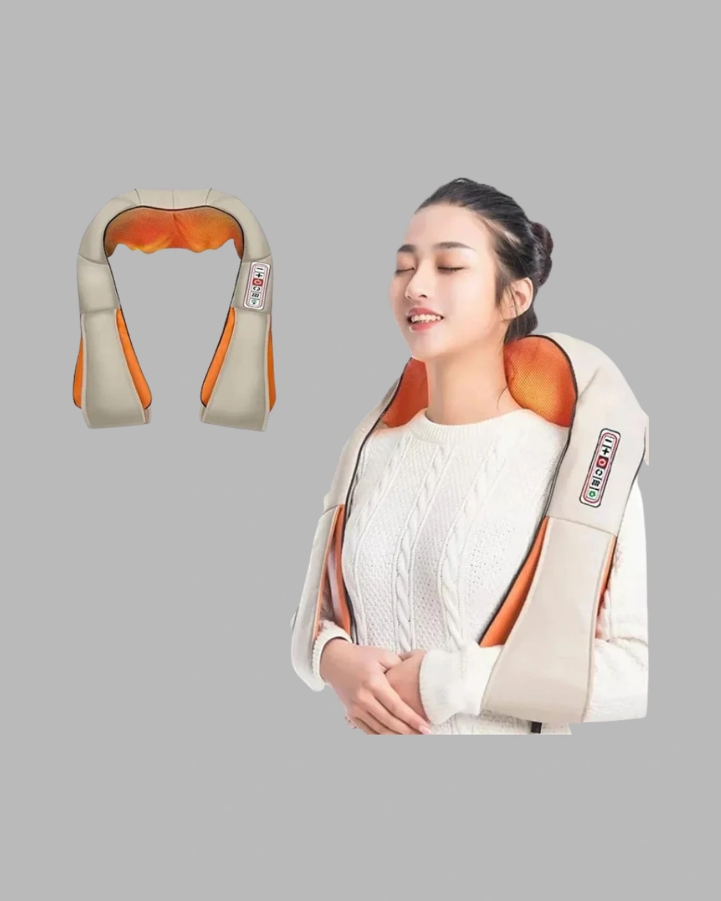 Gelişmiş teknoloji kullanılarak tasarlanan bu masaj cihazı, yoğurma hareketi ve ısıyı otomatik olarak yönlendirerek kaslarınıza ayarlanabilir bir terapi uygular. Boyun, omuz, kulunç ve sırt bölgelerine rahatlıkla uygulanabilir. Masaj sırasında yayılan sıcaklık, hem kasların gevşemesini sağlar hem de lenf ve kan dolaşımını destekler; böylelikle dokular arası besin maddesi iletimi ve atıkların uzaklaştırılması hızlanır. Fizyoterapi etkisine yakın bir masaj deneyimi yaşatır. Masaj başlıklarının üç boyutlu üniform yapısı, müdahale gerektirmeyen bir cihaz sunar. Kullanımı rahat ve güvenli olan cihaz aşırı ısınma koruma sistemiyle tasarlanmıştır; belli bir sıcaklığa eriştiğinde devreye girerek cihazı koruma moduna alır. PU deri ve nefes alan kumaş kaplamasıyla hem hijyenik hem uzun ömürlüdür. Boyun şalı formunda yapılandığı için cihaz vücudunuzu sararak daha etkili bir masaj deneyimi sağlar.