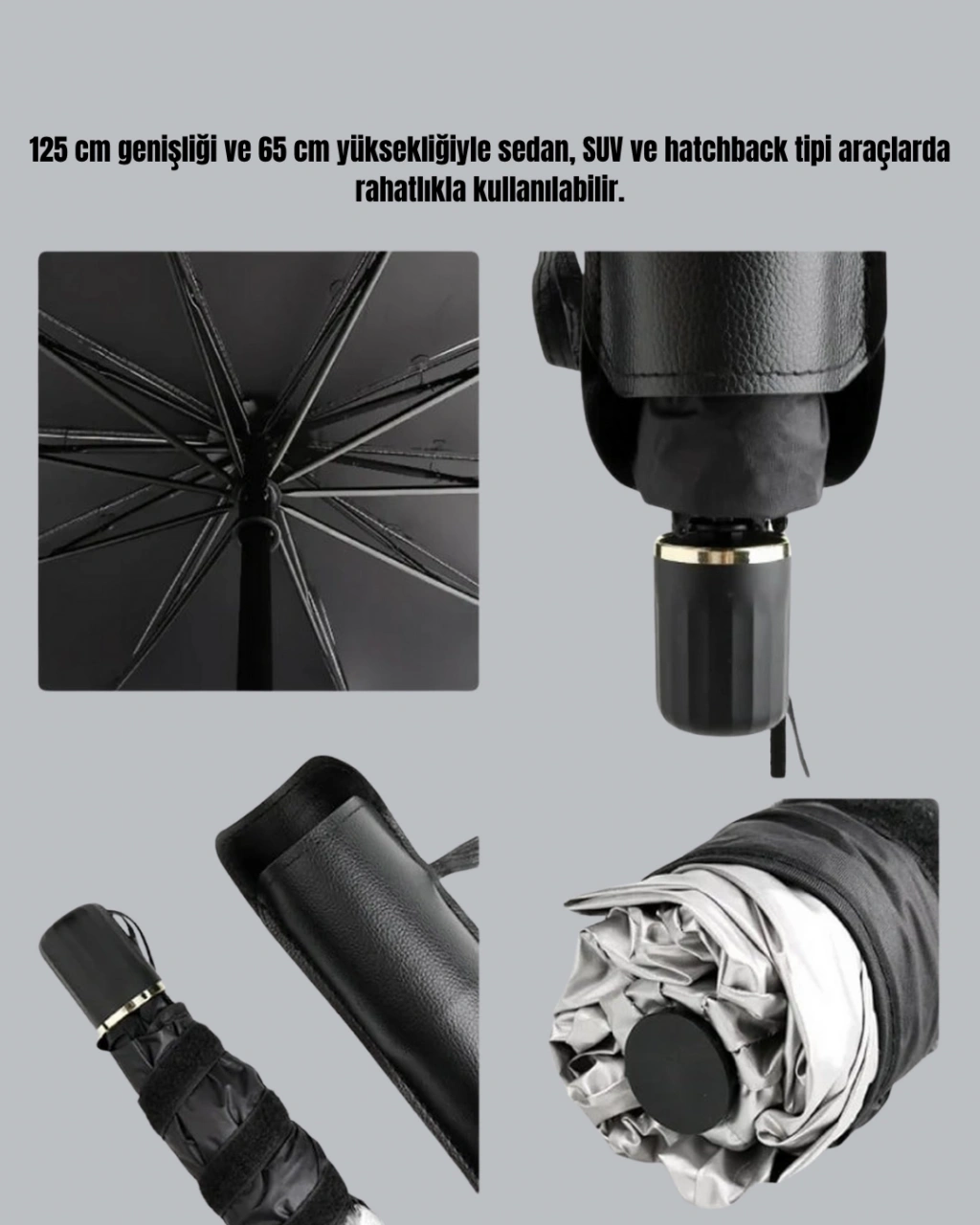 Bu yenilikçi katlanabilir oto güneşlik, 125 cm x 65 cm ölçüleriyle farklı araç tiplerine uygundur. Sedan, SUV ve hatchback modellerde rahatlıkla kullanılabilir. Aracın ön camına tam oturarak maksimum koruma sağlar.Güneşli günlerde araç içi sıcaklığı minimumda tutmak için tasarlanmış bu ürün, yansıtıcı yüzeyi sayesinde güneş ışınlarını etkili şekilde yansıtır. UV ışınlarına karşı üstün koruma sunar ve iç yüzeylerin ömrünü uzatır.UPE alaşım malzeme kullanılarak üretilen gövde, uzun süreli kullanıma uygundur. Dayanıklılığı sayesinde yaz boyunca güvenle kullanılabilir. Şemsiye benzeri tasarımı, kullanım kolaylığı sağlar: sadece birkaç saniye içinde açılıp aracın ön camına yerleştirilebilir.Kullanım sonrası kompakt şekilde katlanarak özel çantasına yerleştirilir. Bu da depolama açısından büyük avantaj sağlar. Araç içi dağınıklığı önler ve her zaman hazır bir kullanım sunar.Araç içindeki ısıyı azaltarak klima kullanımını azaltır, yakıt tasarrufuna da katkıda bulunur. Günlük sürüşlerinizi daha konforlu hale getirir.Kutu içeriği: 1 adet oto güneşlik + taşıma çantasıModern sürücüler için pratik ve koruyucu bir çözüm.