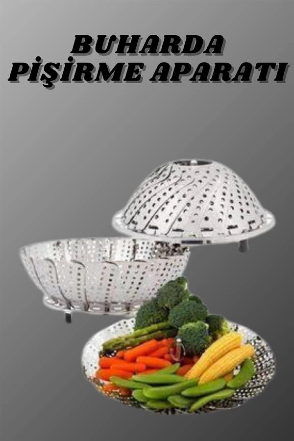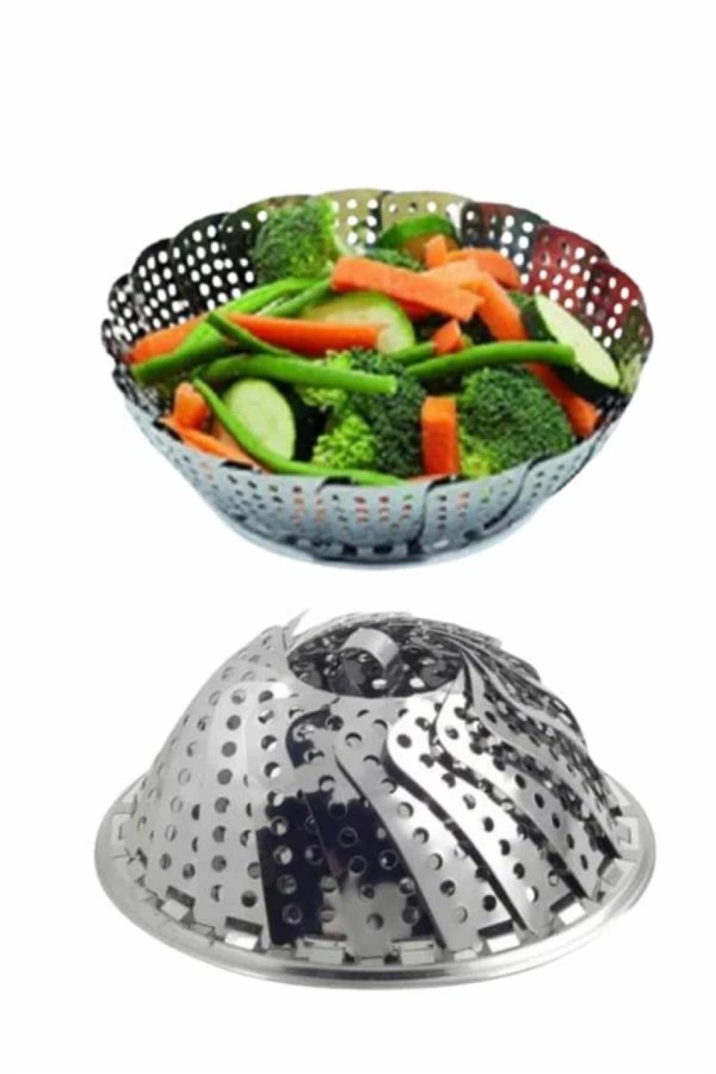 Katlanır Buharda Sebze Pişirici Haşlayıcı Haşlama Sepeti Aparatı