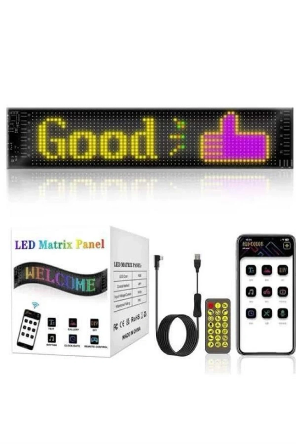 Matrix LED Panel, içerisinde yüzlerce GIF ve kişiselleştirilmiş yazı ekleme imkanı sunarak dikkat çekici bir görsel deneyim sağlar. Geniş kullanım alanına sahip olan bu ürün, arabalar, otobüsler, evler, iş yerleri ve daha birçok alanda rahatlıkla kullanılabilir. Dayanıklı malzemelerden üretilmiş yapısı sayesinde uzun ömürlü kullanım sunarken, göz alıcı LED ışıkları ile her ortamda fark yaratır. 5V 2A gücündeki USB bağlantısı sayesinde herhangi bir USB girişi veya çıkışından kolayca güç alarak pratik bir kullanım sağlar. Mobil uygulama desteğiyle yazılarınızı ve GIF'lerinizi istediğiniz zaman değiştirebilir, ortama uygun dinamik bir görünüm oluşturabilirsiniz. 16x96 cm boyutlarıyla hem pratik hem de şık bir tasarıma sahip olan bu LED panel, araç içi ve dış kullanım için uygundur ve hayatınıza renk katar.