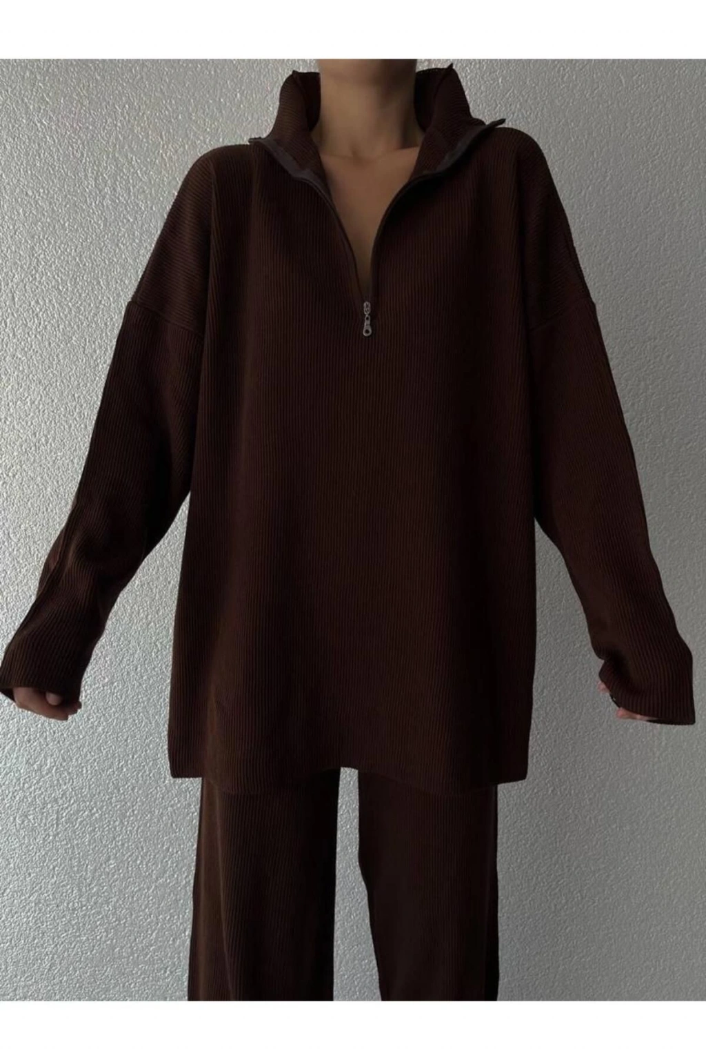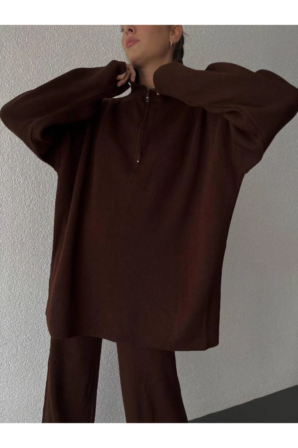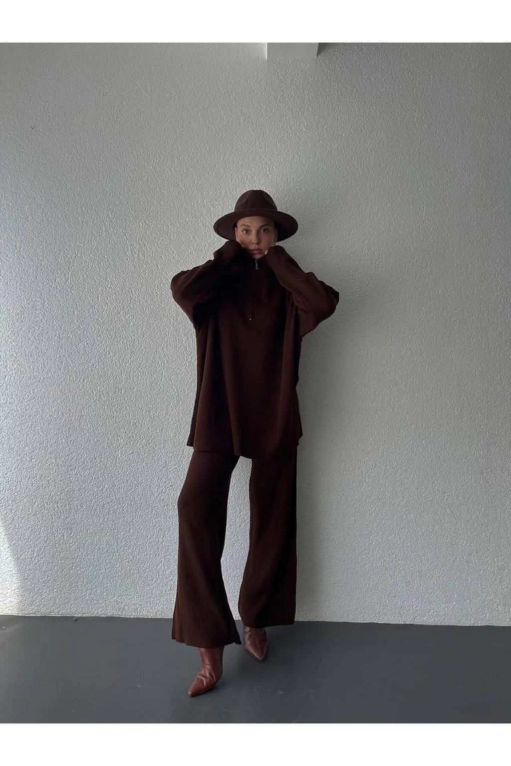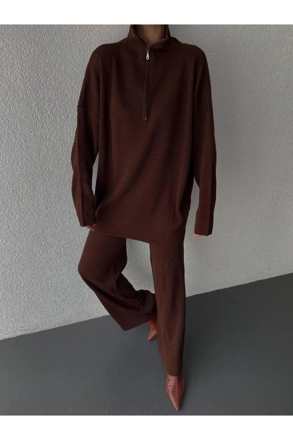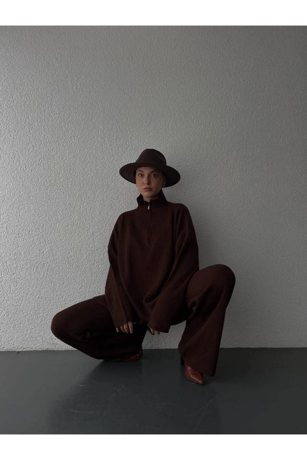 - Yumuşak dokusu ve rahat kesimi ile günlük kullanım için ideal, oversize kalıba sahip triko alt-üst takım; - Midi boyu sayesinde hem şık hem de rahat bir görünüm sunar, hareket özgürlüğü sağlar; - Fermuarlı yaka detayı ile modern ve pratik bir kullanım imkanı tanır; - Uzun kollu tasarımı, mevsim geçişlerinde ideal sıcaklık dengesi sağlar; - %100 akrilik materyal bileşeni ile dayanıklılık ve konforu bir arada sunar; - Bluzlu pantolonlu alt-üst takım kombini, zamansız bir stil oluştururken kolay kombin yapma imkanı verir; - Düz renk seçeneğiyle her tür üst giyimle uyum sağlayarak gardırobunuzun vazgeçilmezi haline gelir; - Orta kalınlıkta kumaşı mevsim geçişlerinde ideal konforu sunarken, akrilik dokuma tipi dayanıklılığı artırır; - Casual ortamlarda rahatlıkla tercih edebileceğiniz bu takım, günlük şıklığınızın tamamlayıcısıdır.; - Basic siluetiyle her;