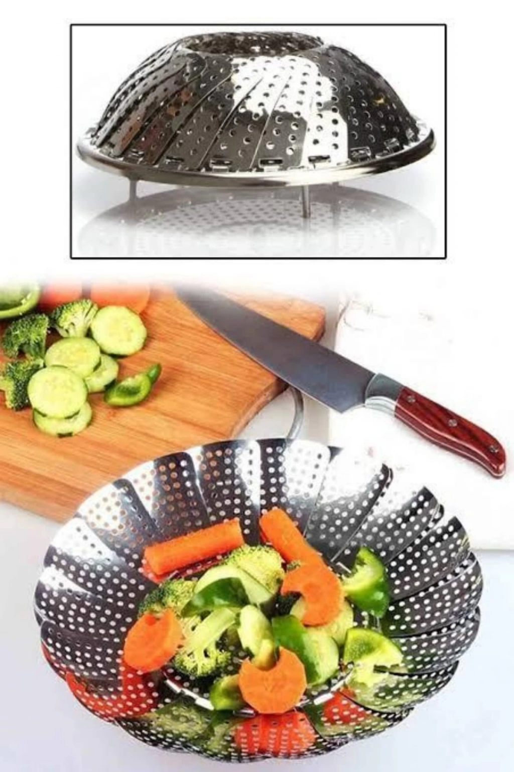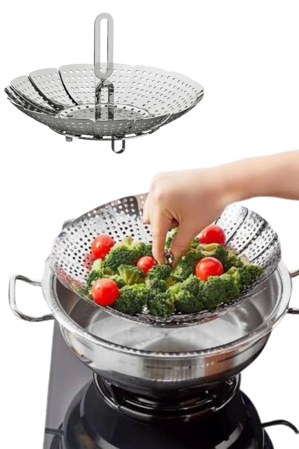 Sebze Haşlama Sepeti Paslanmaz Çelik Katlanabilir Buharda Pişirme