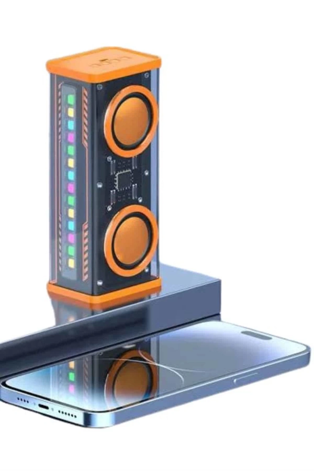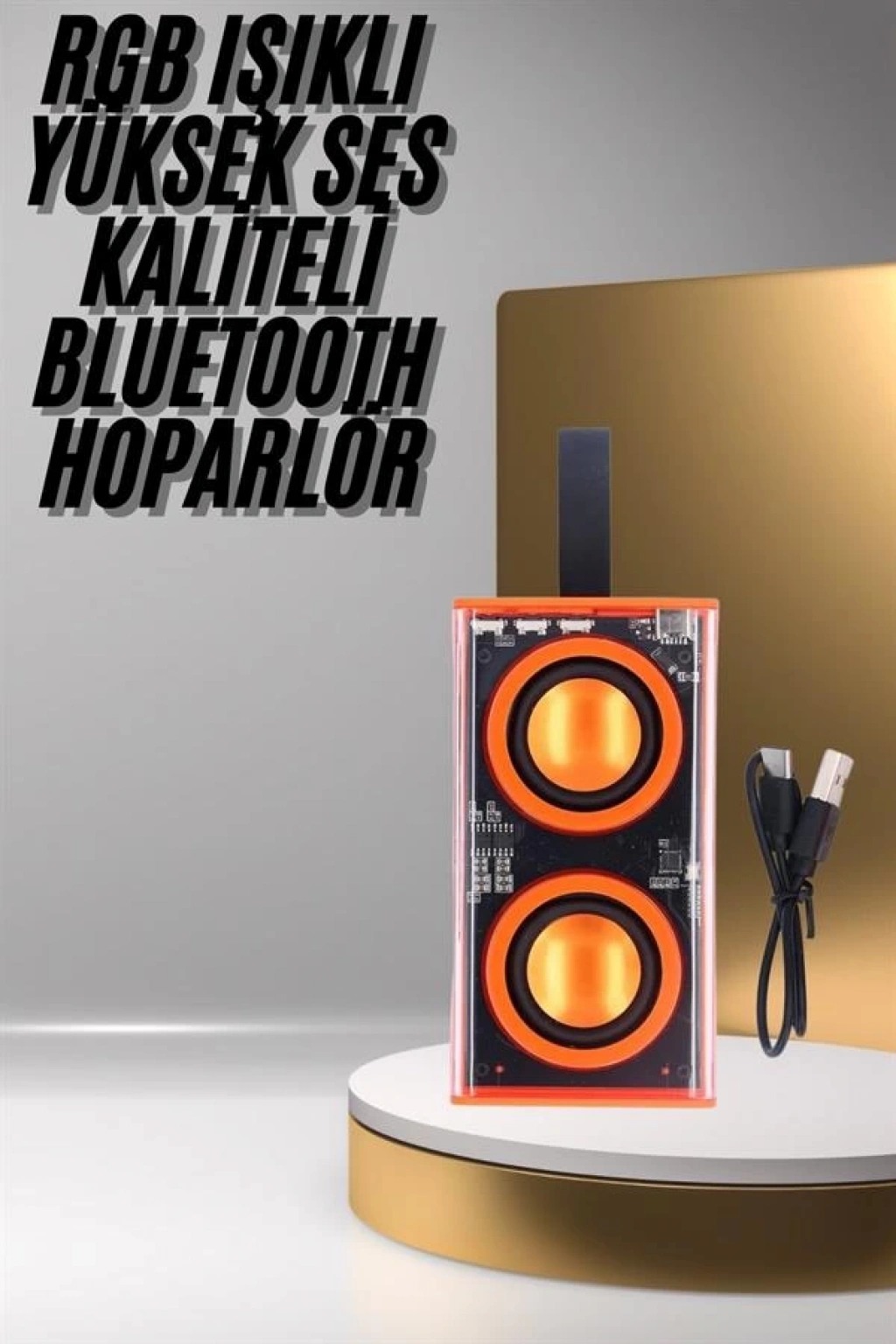 Şeffaf tasarımı ve RGB ışık efektleriyle dikkat çeken bu kablosuz Bluetooth hoparlör, müzik deneyiminize hem estetik hem de işlevsel bir boyut kazandırır. Kompakt ve taşınabilir yapısı sayesinde ister evde ister dış mekanlarda rahatlıkla kullanılabilir. Şeffaf akrilik malzemeden üretilmiş gövdesi, dayanıklılığıyla öne çıkarken, renkli ışıklarla birleştiğinde adeta teknolojik bir sanat eseri hissi uyandırır.Gelişmiş Bluetooth 5.0 teknolojisiyle donatılmış bu hoparlör, mobil cihazlarınızla saniyeler içinde eşleşir ve 10 metreye kadar kesintisiz bağlantı imkanı sunar. 10W gücündeki çift hoparlörü ile net tizler ve derin baslar sunarak çevresel ses etkisi oluşturur. TWS (True Wireless Stereo) desteği sayesinde iki cihazı eşleştirerek daha geniş ve etkileyici bir ses alanı yaratabilirsiniz.Dahili 1500mAh bataryası ile tek şarjda yaklaşık 4 saate kadar müzik çalabilir. Enerji tasarruflu yapısıyla uzun süreli kullanım sağlar ve Type-C şarj girişiyle kısa sürede tamamen şarj edilebilir. Ayrıca, yerleşik mikrofonu sayesinde gelen çağrılara yanıt verebilir, eller serbest konuşmalar gerçekleştirebilirsiniz.Müzikle senkronize hareket eden renkli ışık efektleri, özellikle gece kullanımlarında ortama ambiyans katarken, eğlenceli bir atmosfer yaratır. Açık hava etkinliklerinden ev partilerine, ofis kullanımından hediye seçimine kadar birçok alanda tercih edilebilir.Ürün, bir adet hoparlör, Type-C şarj kablosu ve kullanım kılavuzuyla birlikte gelir. Modern tasarımı, güçlü ses performansı ve dinamik ışık oyunlarıyla, bu hoparlör hem gözünüze hem kulağınıza hitap eder.