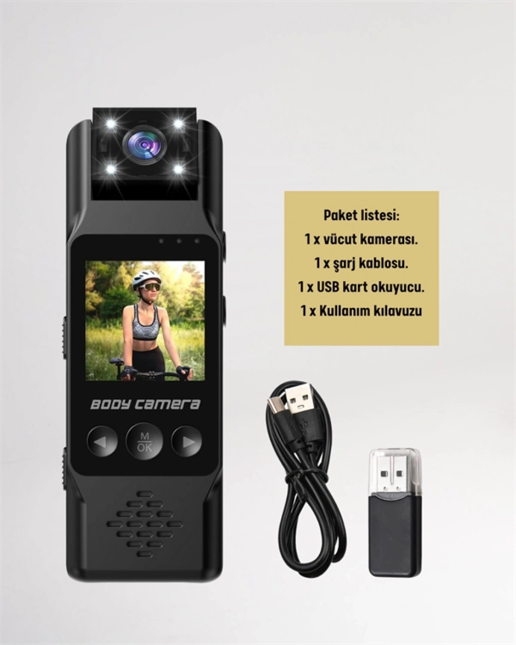 Yenilikçi ve kompakt tasarımıyla öne çıkan bu yüksek teknolojili mini kamera, hem profesyonel hem günlük kullanım için kusursuz bir seçenek sunar. 180 derece dönebilen lensi sayesinde çekim açısını istediğiniz gibi ayarlayabilir, sabit kadrajlara mahkum olmadan daha özgür kayıtlar yapabilirsiniz.1.3 inçlik renkli TFT ekranı (240x240 çözünürlük), canlı görüntü ön izlemesi ve kolay menü kullanımı ile kullanıcı dostu bir deneyim sunar. Video kayıt çözünürlüğü 1920x1080P ve 1280x720P destekleyerek net, detaylı ve akıcı videolar elde etmenizi sağlar. Video dosyaları AVI formatında kaydedilirken, fotoğraflar JPG formatında ve 1M, 2M, 3M kalite seçenekleriyle çekilebilmektedir.Döngüsel kayıt özelliği ile bellek dolsa bile eski kayıtlar silinerek yeni kayıtlar yapılabilir. 3, 5, 10 ve 15 dakikalık döngü seçenekleri mevcuttur. Otomatik beyaz dengesi yanında güneşli, bulutlu, tungsten ve floresan gibi farklı aydınlatma koşulları için manuel seçenekler de sunar.Hareket algılama ve kayıt fonksiyonları sayesinde güvenlik amaçlı da rahatlıkla kullanılabilir. Zaman damgası, tuş tonu, otomatik kapanma, ekran zamanlayıcısı gibi detaylı ayarlar kullanıcıya tam kontrol sağlar.1200mAh lityum polimer bataryası, uzun süreli çekim yapmanızı sağlar. 3.7V voltajında çalışan cihaz, USB üzerinden şarj edilebilir. Düşük enerji tüketimi ve 50g’lık hafif yapısıyla hem taşınabilirlik hem de verimlilik sunar. TF kart desteği 128GB’a kadar çıkmakta olup, geniş depolama imkânı sağlar.Dayanıklı gövdesi, -25°C ile +75°C arasında çalışma sıcaklığına dayanıklıdır. Ürün boyutu sadece 963118mm olup, cebinizde dahi rahatça taşınabilir.
